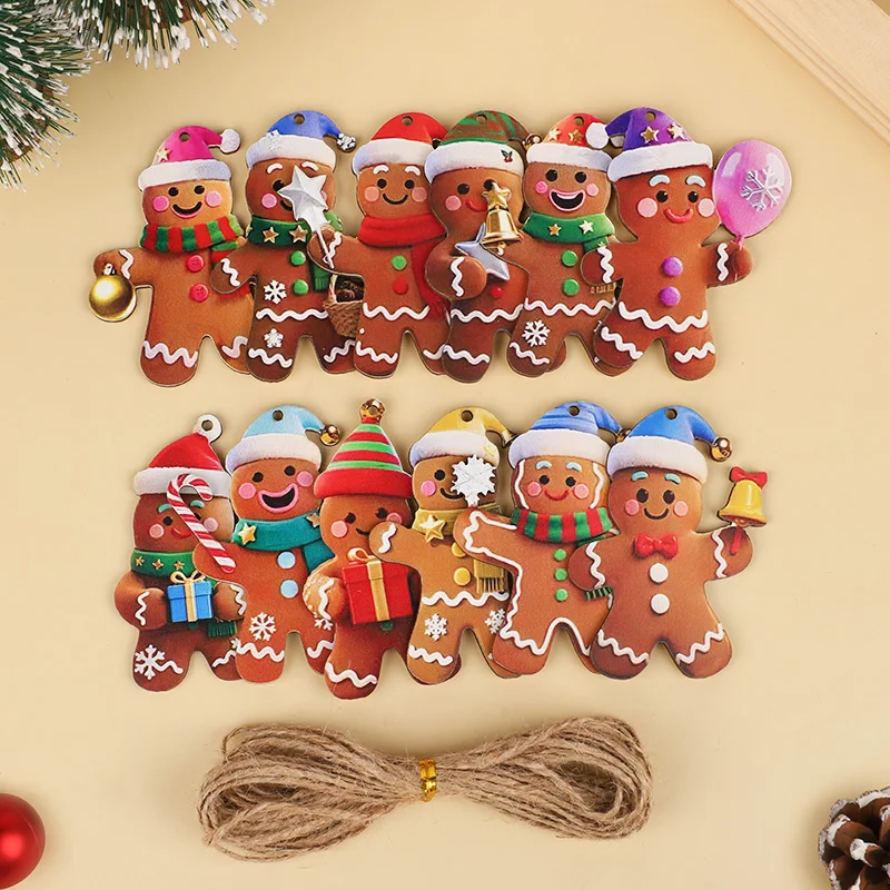 12/24pcs Christmas Gingerbread Man Ornaments Xmas Tree Wooden Hanging Pendants 2026 New Year Party Home Decoration Kids DIY GIft