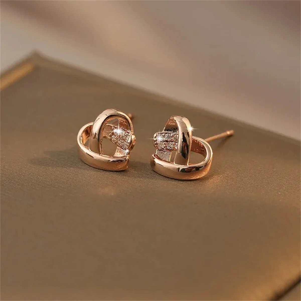 2pcs Fashion Eternity Love Zircon Ear Stud for Women Girls,Gold Color Heart Tragus Cartilage Earrings Chic Wedding Jewelry