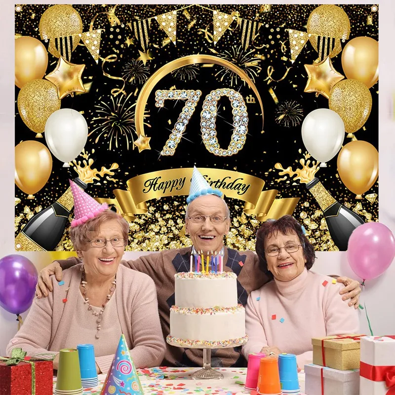Happy 30th 40th 50th Birthday Banners Black Gold Birthday Party Decorations Adults 30 40 50 Years Old Birthday Party Supplies