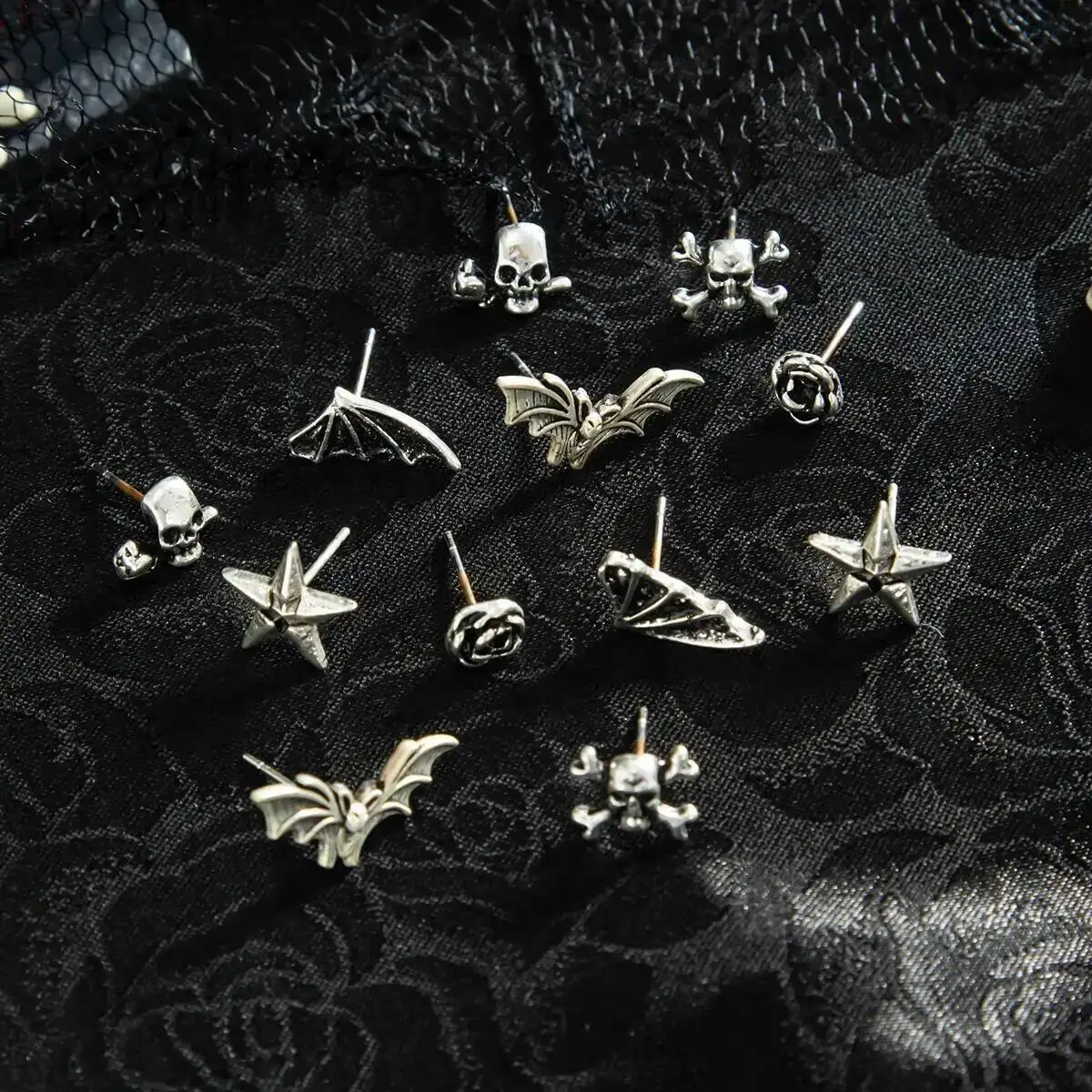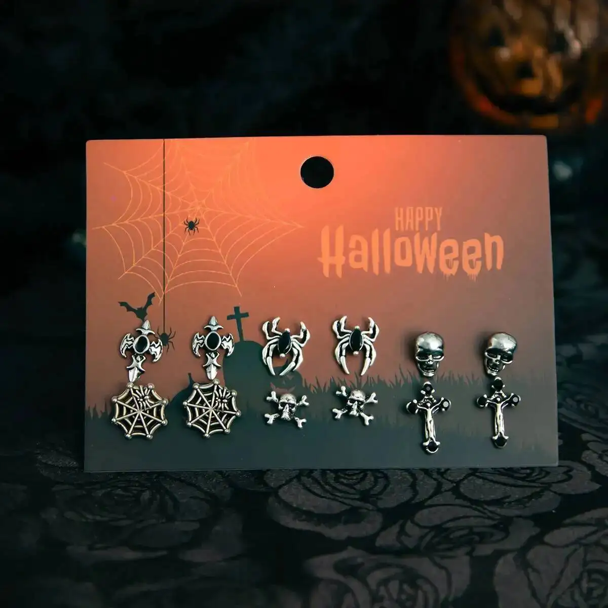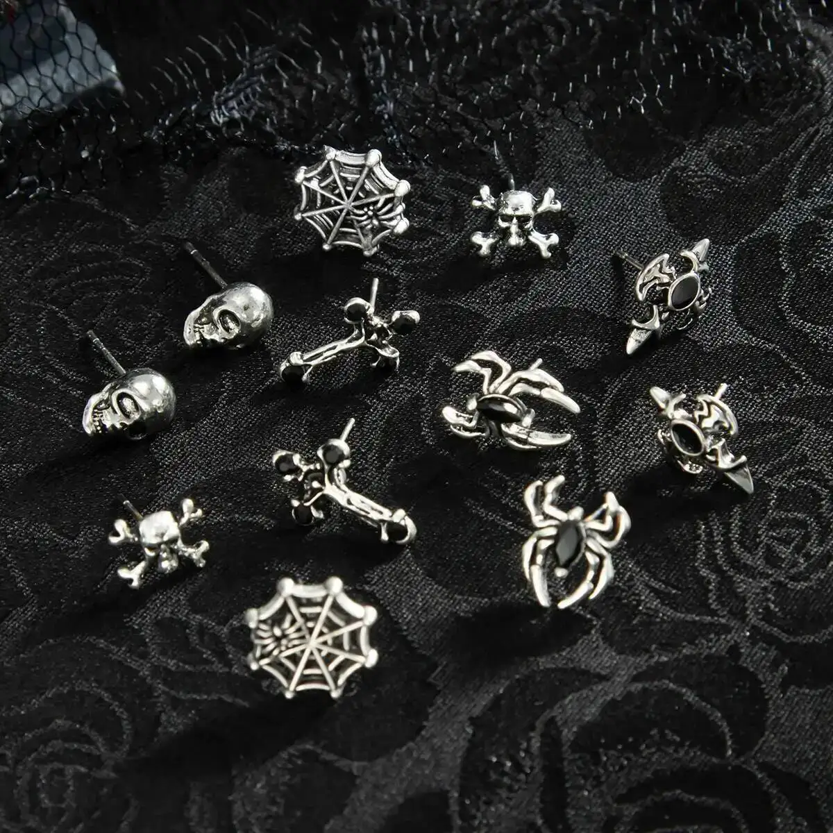 These earrings showcase a trendy goth design with punk skull and spider web patterns, perfect for Halloween parties or everyday wear.