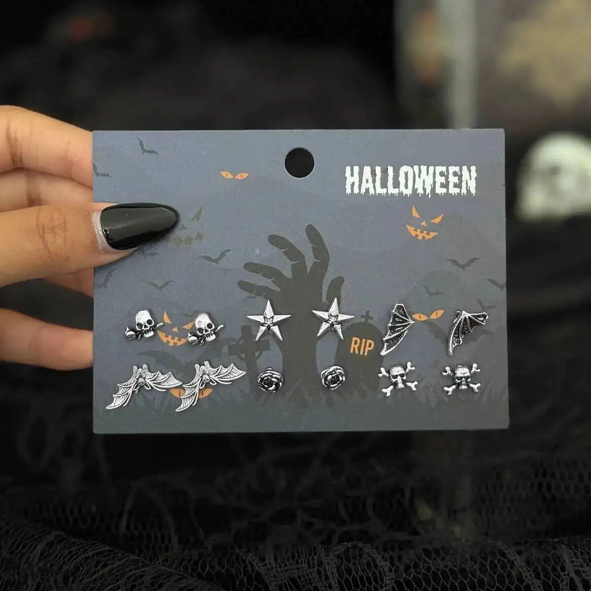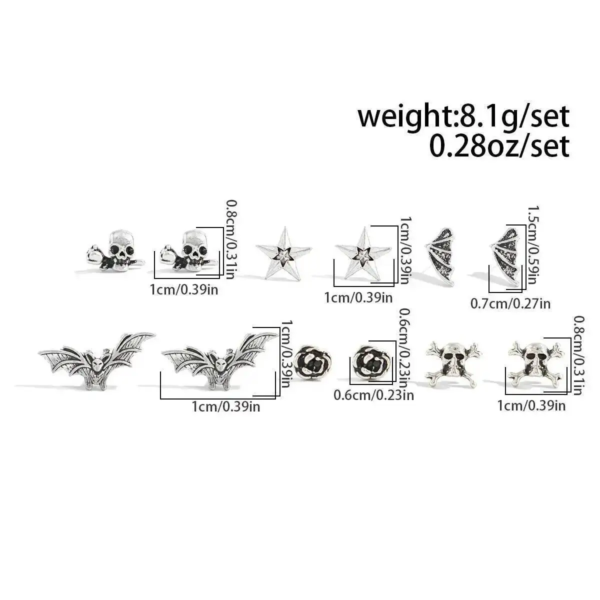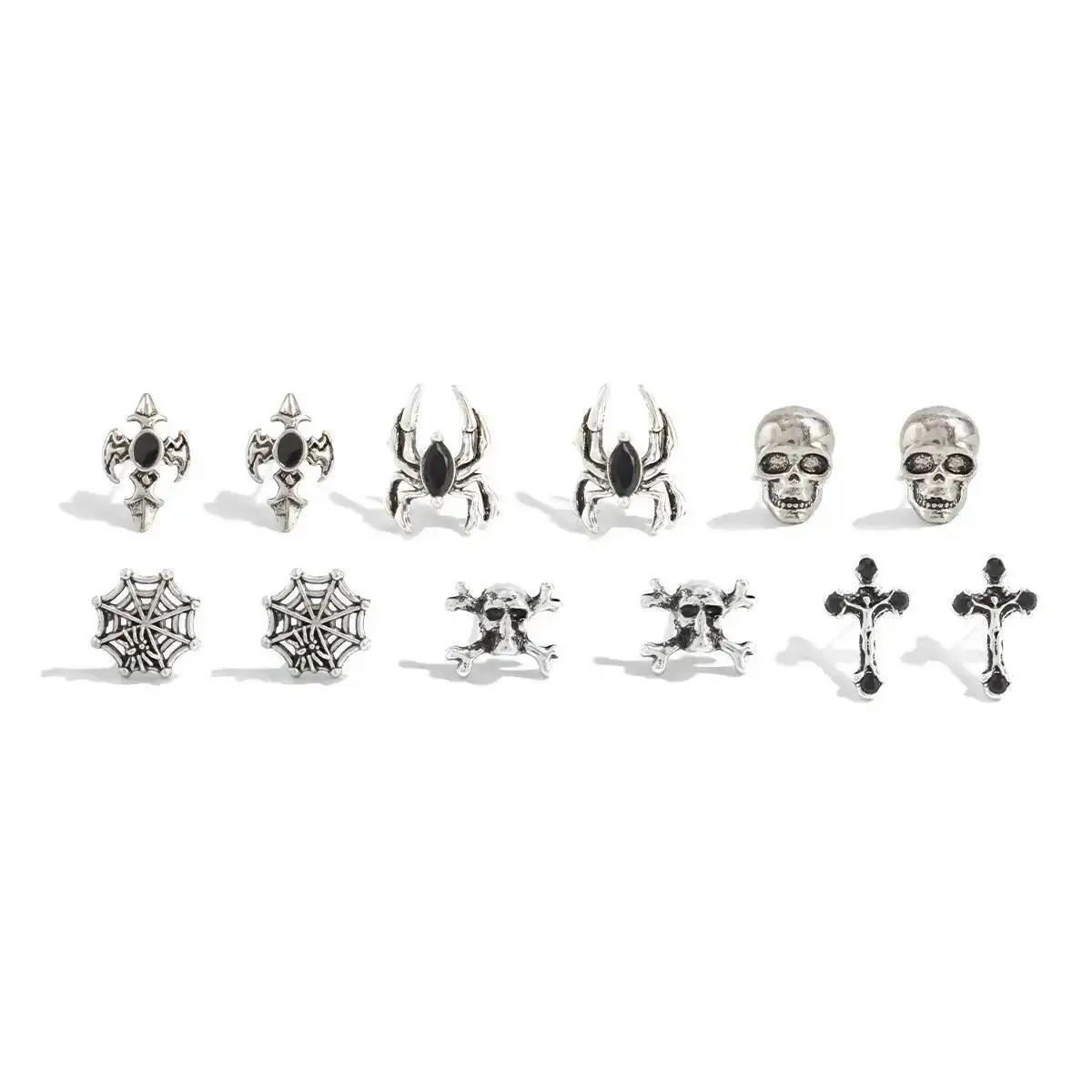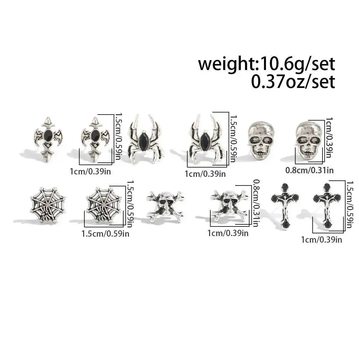 KunJoe 6 Pairs Gothic Spider Cross Skull Earrings for Women Retro Bat Skeleton Stud Earrings Halloween Jewelry Accessories