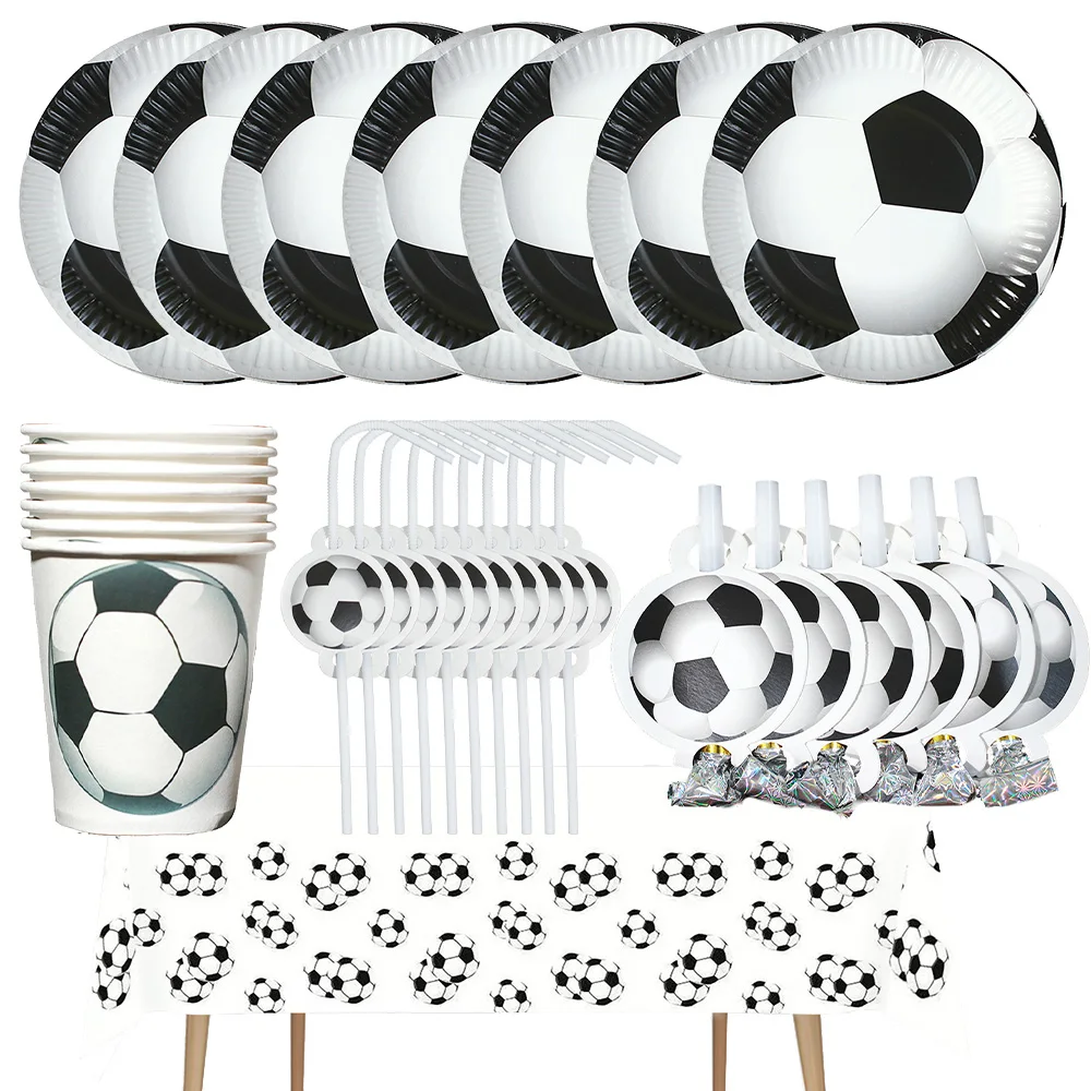 Soccer Theme party decoration plates cups tablecloth supplies kids boys Football theme birthday party decoration drinking straws