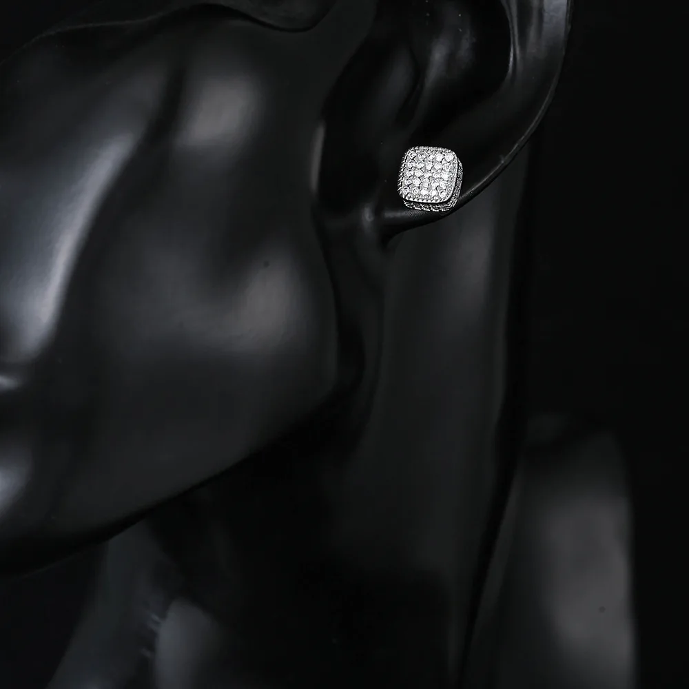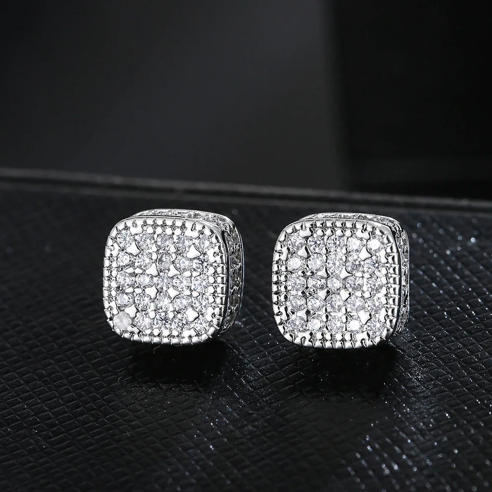 Trendy Square-shaped Men Cool Hip Hop Style Stud Earrings with  Zirconia Perfect Men's and Women's Rock Jewelry Accessories